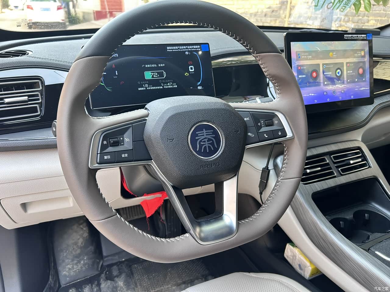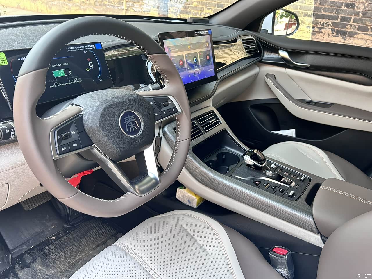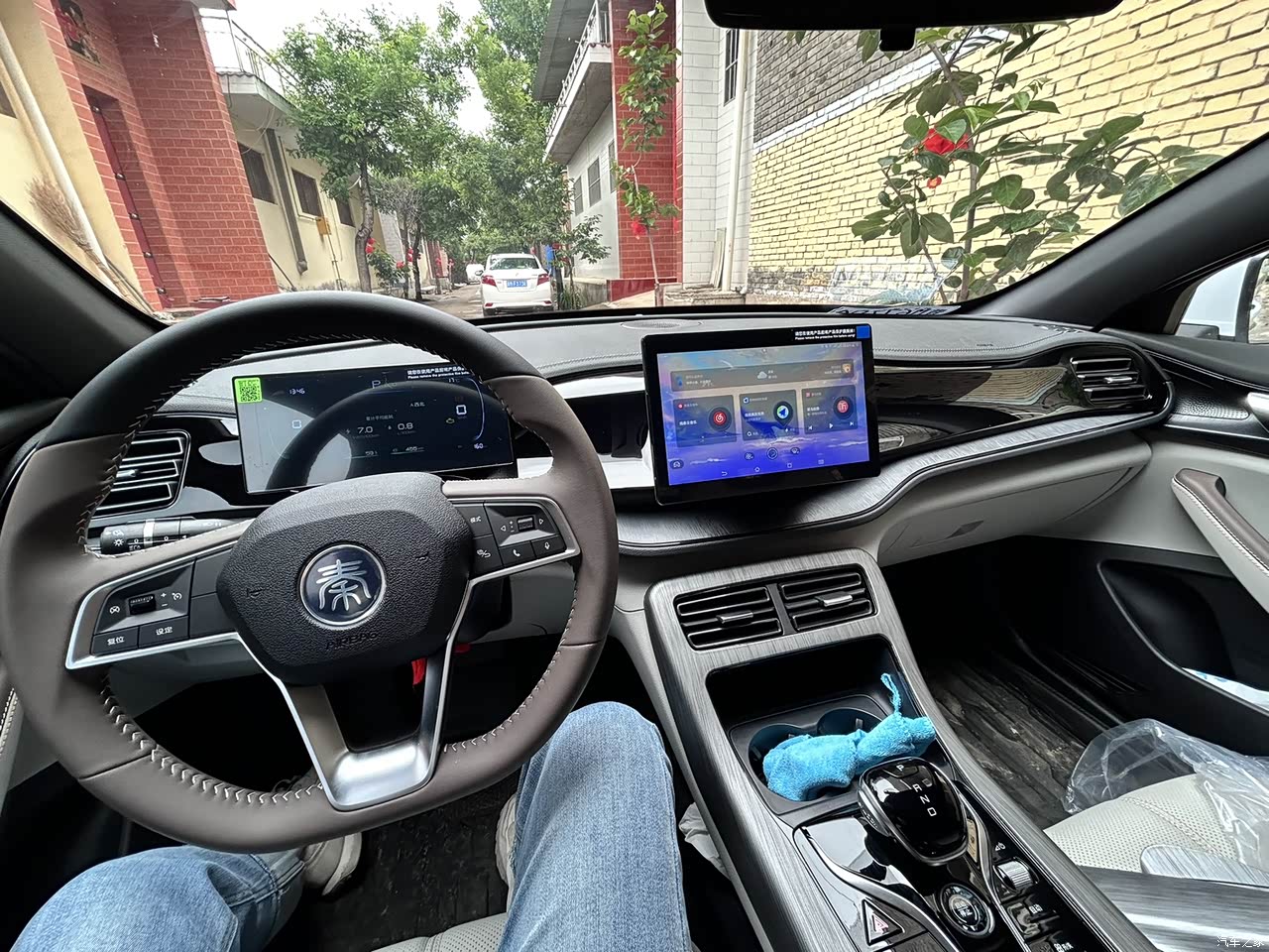 秦Plus这款车的内饰还是比较惊艳的,中控有一块比较大的悬浮屏,很有科技感,语音识别速度也很快。车内的内饰和做工都挺好的,用的也都是比较好的材料,座椅仿皮材质,颜色是暖阳棕,非常新颖的设计,比传统的黑色内饰增添了一些轻盈感,中控的钢琴烤漆饰板更是显得高级,一点都不像10万落地的车!