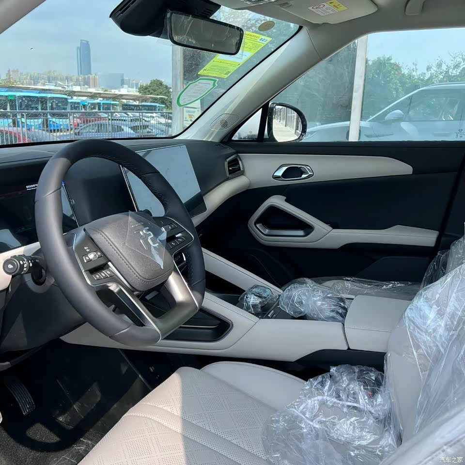 内饰的做工和用料都挺不错的,整体看上去还是比较豪华的。中控台的造型设计得也挺立体饱满的感觉,空调出风口造型独特别致耐看。车门上包裹了大面积柔软材质进行了装饰,摸起来手感也很不错。