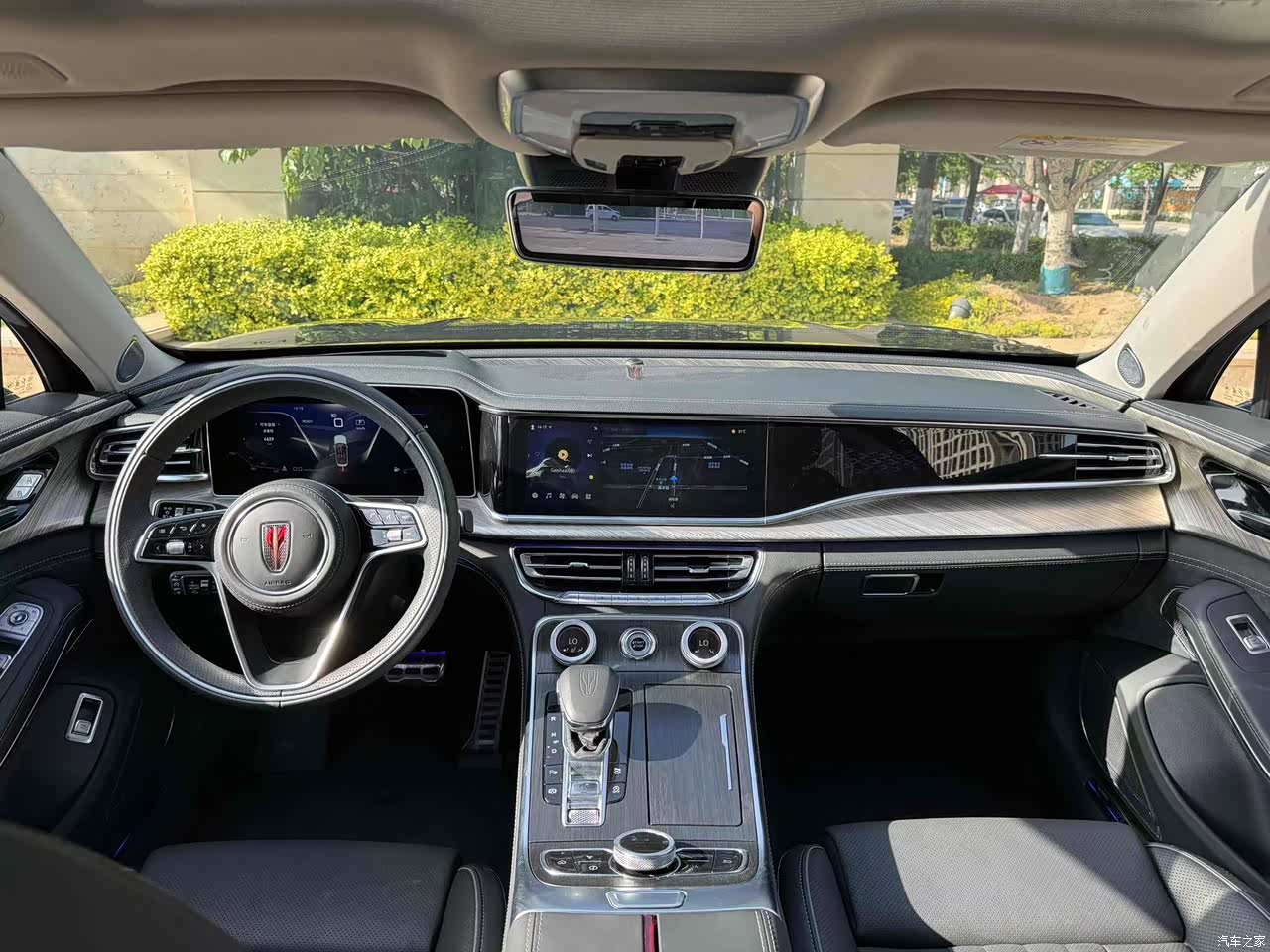 对于红旗H9最满意的肯定就是外观,首先映入眼帘的是车头宽大的镀铬直瀑式进气格栅,底下一条凹型的粗壮镀铬银饰条包围延伸至大灯处,整体视觉冲击力爆棚,在阳光下显得熠熠生辉,加上中间小型水滴式小格删感觉就像是诗句中的飞流直下三千尺的壮阔感,其次是飞翼式LED大灯,就像一双展翅在空中自由翱翔,大灯扁平设计眼神凶悍犀利透露出傲视群雄的眼光,在夜间开启透露处耀眼的光芒,显示出霸气稳重的形象,车身线条流畅优雅知性,从车头到车尾一气呵成,刚毅的密幅式轮毂肌肉感十足,整体显得更加有层次感和动感,车尾圆润饱满看着很厚实,贯穿式尾灯非常有科技感,中间还有一条银饰条和车头前脸相互辉映,双边共出排气管采用镀铬点缀有画龙点睛之效果,完美诠释了红旗运动气息。车头红旗经典造型让人看了心潮澎湃自豪感油然而生,在路上行驶辨识度极高,非常吸引眼球。