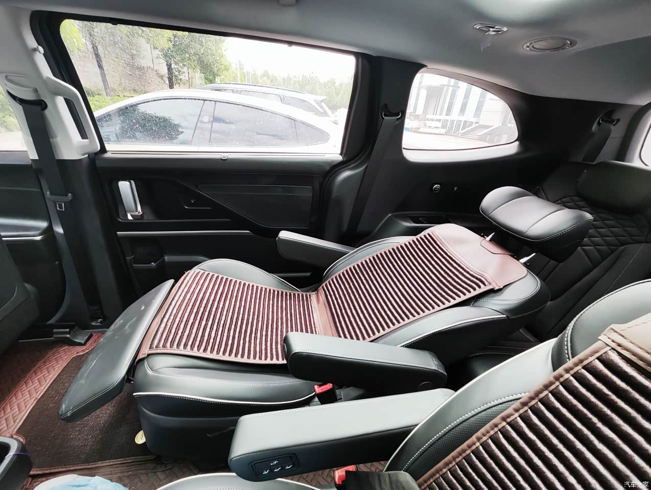 座椅空间很好。二排正常坐姿,第三排不难受,家里人体型不大。七人满载去自驾游,老人坐中间和副驾,老婆身高1.6,加两个1.2-1.4的孩子坐第三排。