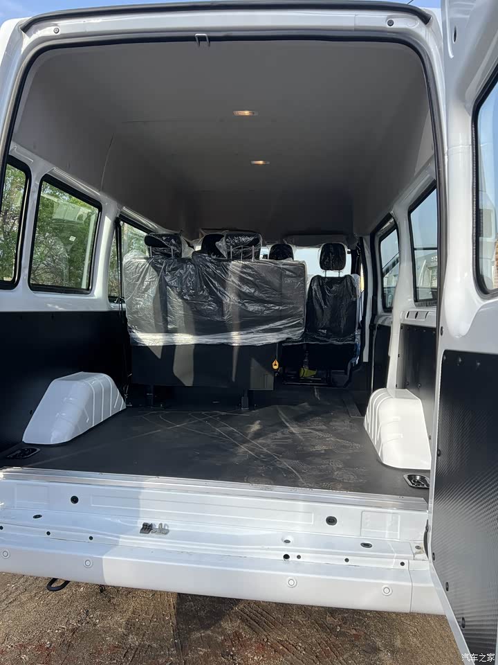 由于短轴中顶车型空间大了,高度2.35米进车库就没有那么方便了,一般的车库都下不去了,平时只能放在露天车场,小区车库根本与它无缘了。底盘高后排上车有点高,打算加一个侧门上车踏板,不然还真不方便。后门也打算加一个踏板,来回上货能方便,要不然搬货太累了!