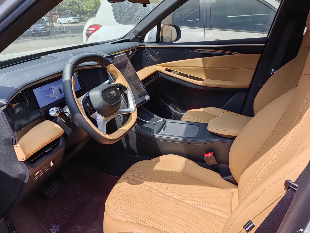 我选的是棕内,感觉比白内好看大气,本来想选黑内,熊猫色带白边,直接PS掉了,从提车到现在没有感觉到有异味,座椅比起其他同价位车型来说要舒服的多,第二排乘坐感受也挺舒服,提供第二排空调出风口,座椅填充物偏舒适,中间提供扶手箱。最亮眼的地方就是“宠爱副驾”了,配备按摩,副驾大屏,腿拖,座椅通风加热,对于家用车来说,吉利抓住了家庭另一半的心,在外出郊游,副驾可自娱自乐,完全不影响驾驶员,中控屏偏向于驾驶位,等于互不干扰