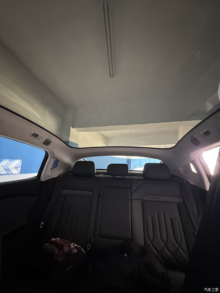 后排空间足够,座椅角度也够舒适,大天窗的视野很好,但是大太阳的时候还是要有一个遮阳帘,后尾箱空间也足够大。