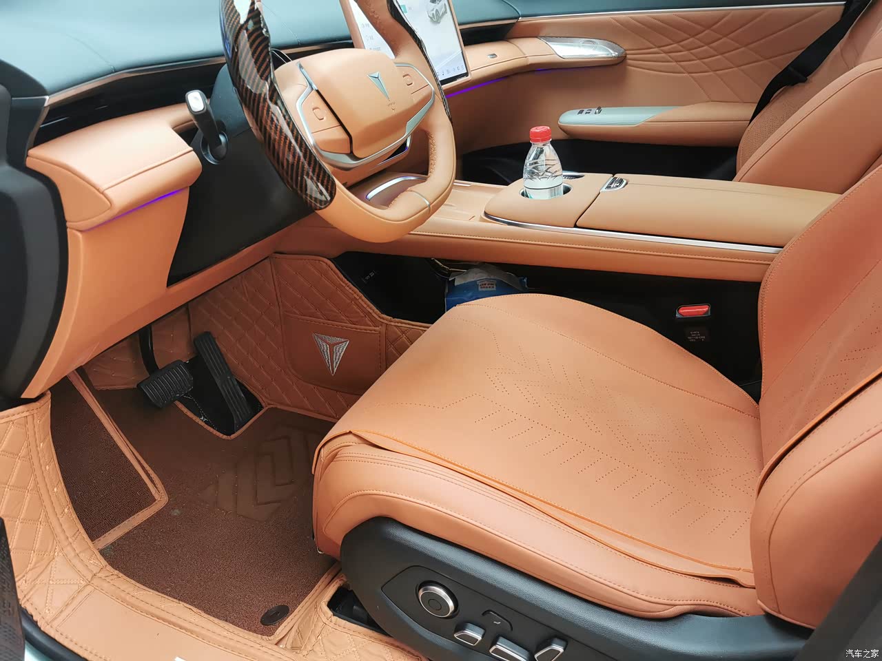 我选的是桔子色内饰,深蓝S7内饰虽然说不上很独特,但视觉层次丰富又简洁。尤其是配有很多电动车去掉了的天窗帘幕,多色HUD显示很清晰,信息显示齐全,有助于安全驾驶,功能非常赞。坐进去感觉座位宽大,座椅软填充非常舒服,坐过很多车,这是最舒服的一个!为此,我选装了两个零重力座椅,配有一个副驾驶位折叠遮阳屏,有时躺着休息,副驾驶位更常用一些,躺在上面非常舒服,还能享受独立的屏幕,非常惬意。