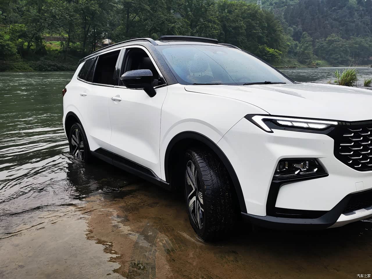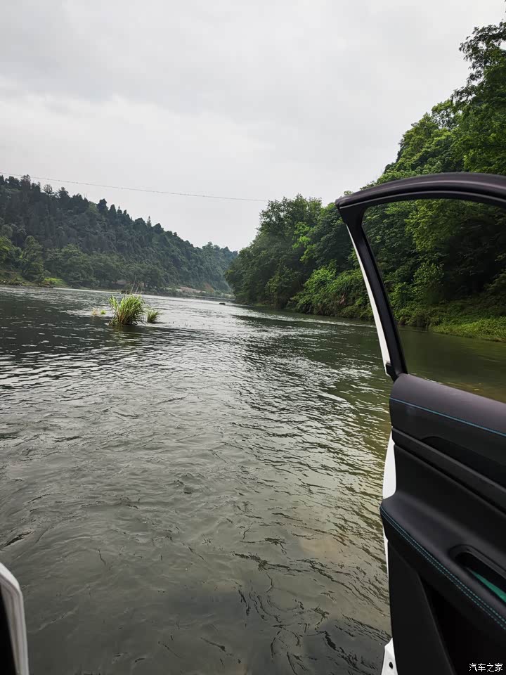 天气晴朗,把车开到山间河溪钓鱼,顺便给车洗个澡