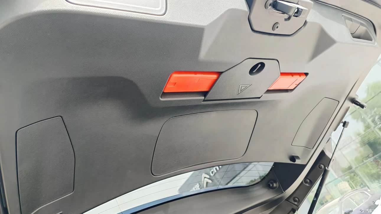 两个亮点:1,三角警示牌在后备箱门上,取用方便!2,中央扶手箱空间超级大,还和空调连接,确实不错。 一个鸡肋:图上的那两个卡片槽很不知道有什么作用?