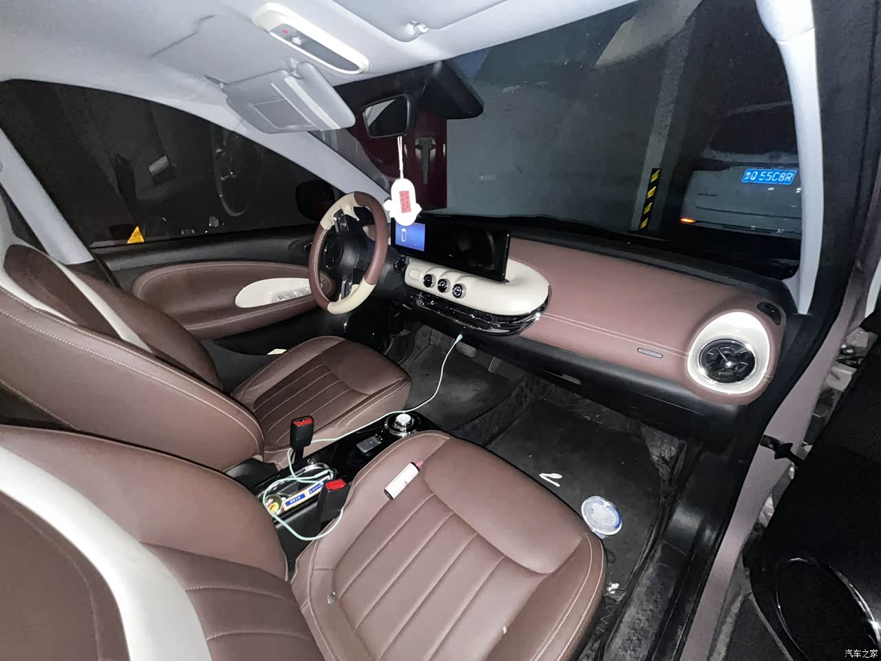 对外观设计很满意,复古又不失可爱,但又不会不稳重。内饰也是挺好的,看起来不廉价,哦,座椅也很柔软,质量不错。而且电池也挺撑用的,续航不虚。度过了一个冬季,在冬天的时候不会因为空调开就蓄电严重,车内后备箱空间很大,有好多东西都可以放得下,去露营什么的也很方便,车内座椅挺舒适,坐着不会很廉价。