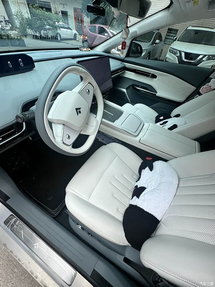 整体上是黑白配色,看来很有质感简约风,皮质座椅做起来很舒服,摸到的地方都是软包👍,前排空间很宽,特别副驾可以伸直腿且还有推托,后排空间中规中矩