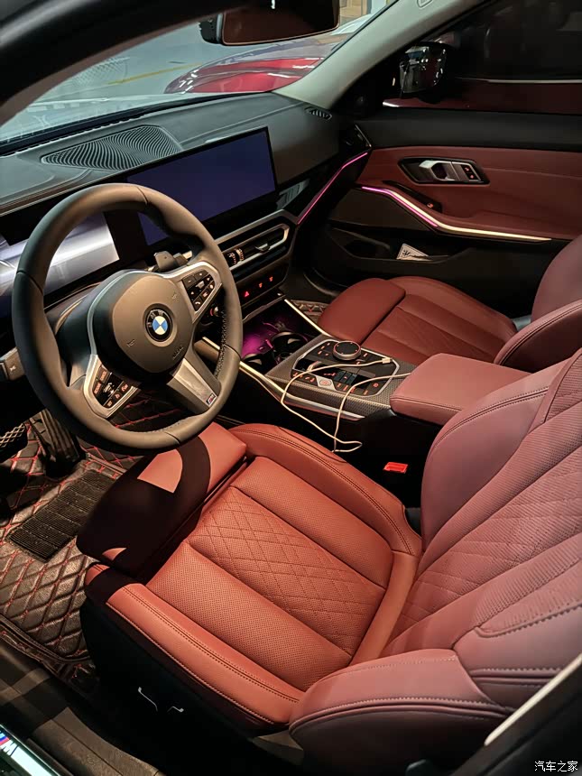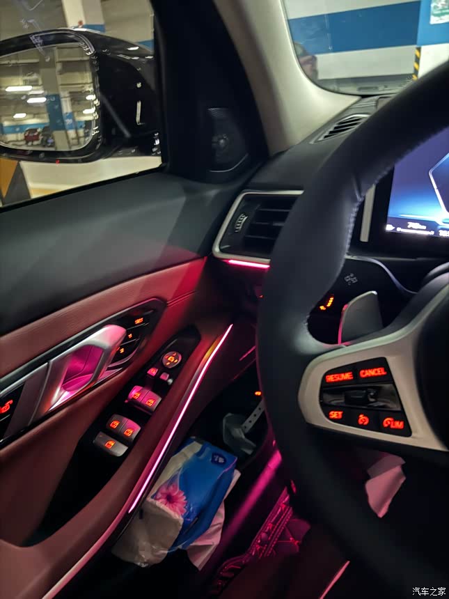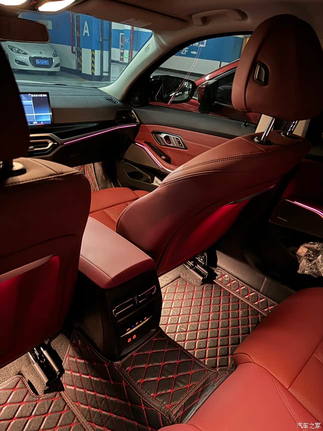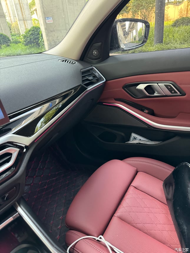 大连屏与系统,这代大连屏见仁见智叭,但确实..从副驾看连屏的支架非常突兀。但不得不说,宝马的carplay适配真的炒鸡好用!简直感觉carplay才是亲生的系统!红色的内饰让人一进门就觉得眼花缭乱,整体很大气,一体式曲面屏的设计,科技感十足,M型方向盛很有质感,加上氛围灯颜色可以调节,水晶质感的换挡拨片必须有,简单精致