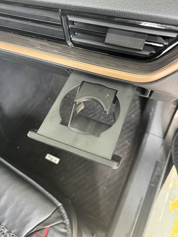 这个杯架放下奶茶、咖啡很合适。中控下放纸巾盒、雨伞方便拿取,门饰板还可以放瓶装水,很实用。