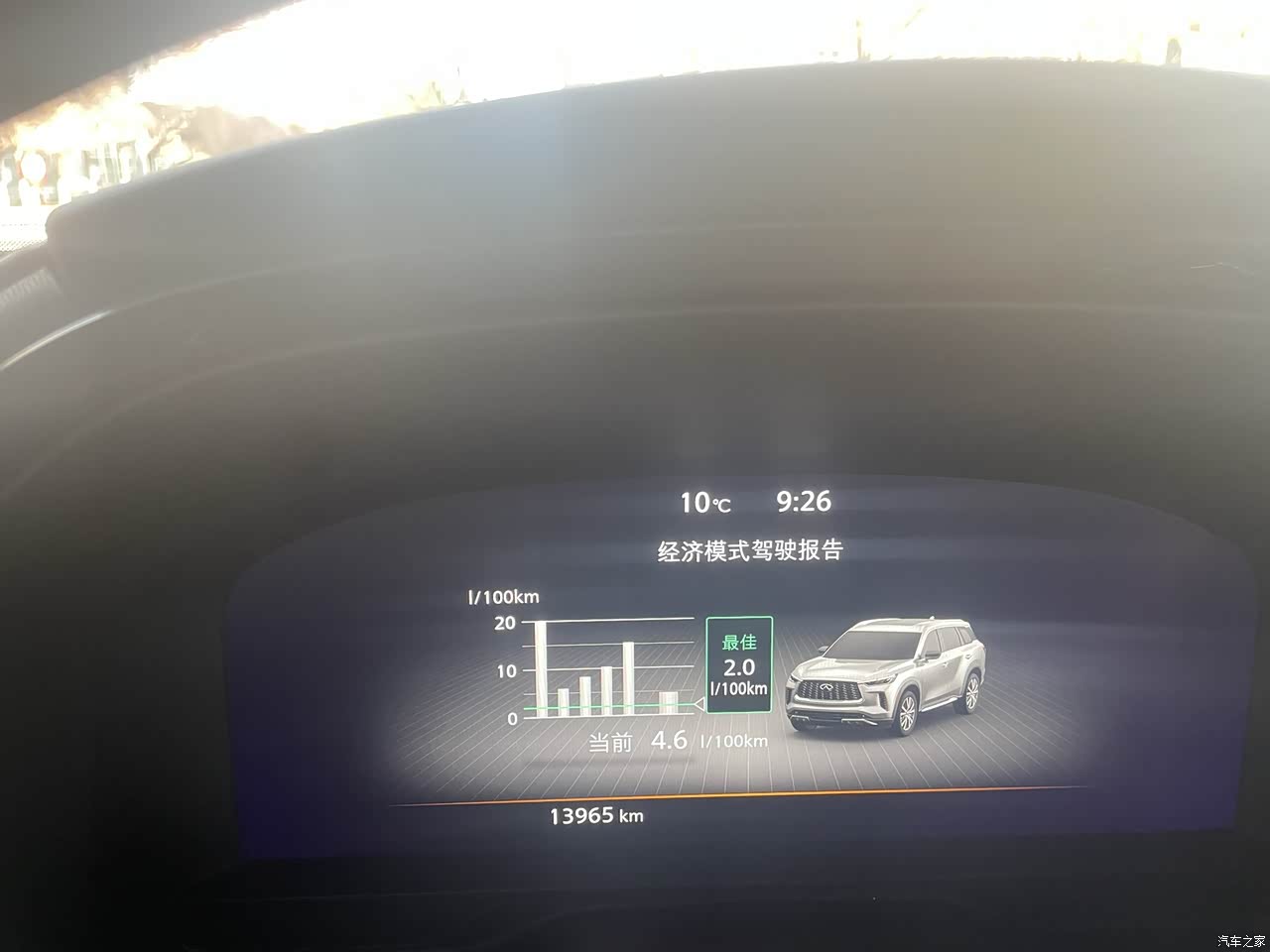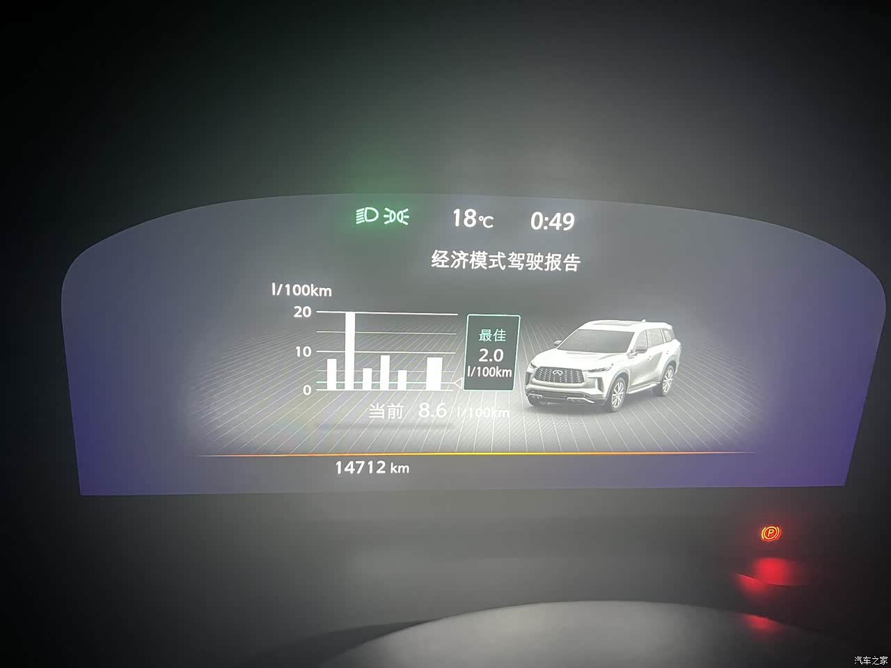 当时选择英菲尼迪QX60就是比较中意日系车的口碑省油抗造。根据行车电脑显示百公里油耗目前维持在10.5L左右,要是跑郊区乡道会更省一些相比同级价位SUV来说算是比较省油。