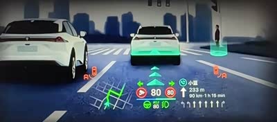 - 丰富的安全配置:集成了多项安全驾驶辅助功能,如盲点监测、车道保持辅助、自动紧急刹车等,通过传感器实时监测车辆周围环境,提升行车安全. - L2级智能驾驶辅助:具备L2级智能驾驶辅助系统,包括定速巡航、车道居中保持等功能等,在特定条件下可减轻驾驶疲劳,提升驾驶的安全性和舒适性. -AR-HUD抬头显示系统,具有诸多特点。首先,其显示内容丰富,包含限速表、速度表、功率、能耗、导航字体及导航小箭头等关键信息,车机自带的高德地图导航结合抬显,线路投射准确,可帮助驾驶者轻松掌握行车信息,减少低头看仪表盘或手机的次数,提升驾驶安全性.