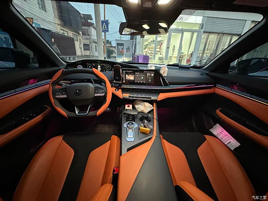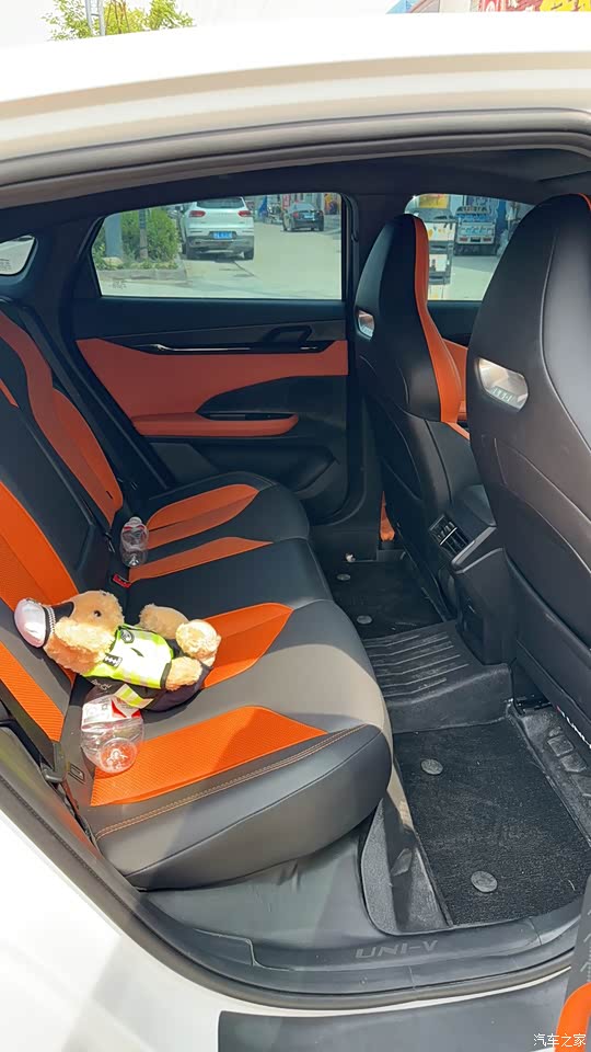 内饰采用了双拼色,橙色非常亮眼,而且座椅也是双拼这样整个车内饰就非常协调,中控台也很有设计感,仪表台也采用一个主屏加上一个小副屏,副屏上还能看水温,让车更有驾驶感,前排还有氛围灯,但是后排却没有 ,这一点就不太好。