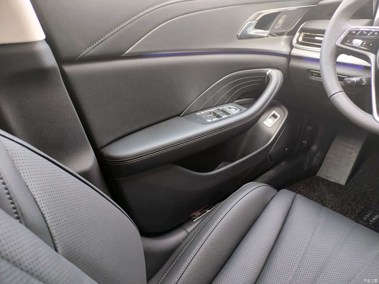 对内饰挺满意的,黑色内饰比较稳重,加上一点灯光点缀,既稳重又不失活力,加上扶手箱点缀着的一抹红色,别有一番韵味。且车内用料没有味道,买来到现在车内经过暴晒也没有出现异味,座椅柔软度适中,坐上很舒适。