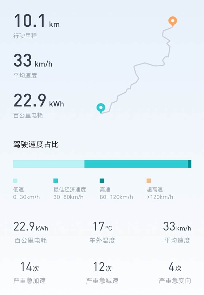 冬天续航是电动车的通病,我有心里准备,6折的样子吧!春夏进入平稳期,满电到70%基本达成率1:1