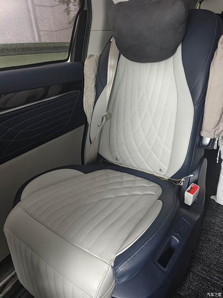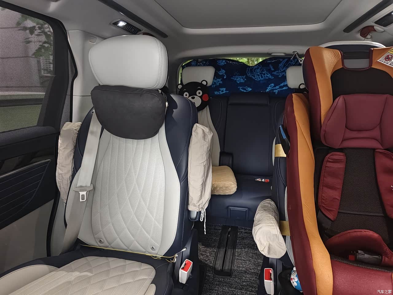 由于是定制车,车内饰看着舒服,第一第二排座椅宽大舒适,第三排稍小,但也够用了。只要设计人员用点心,第三排完全能做得宽大舒适,因为第三排两边有许多空间浪费了。