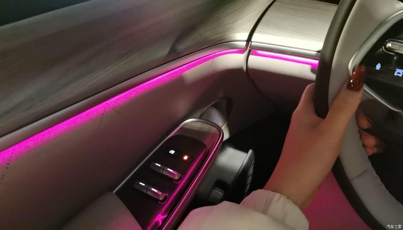 内饰非常漂亮,有的人说塑料感比较强,但是在这个价位中已经算很漂亮的内饰了,氛围灯的效果也很好,是呼吸式的,到了晚上很有感觉