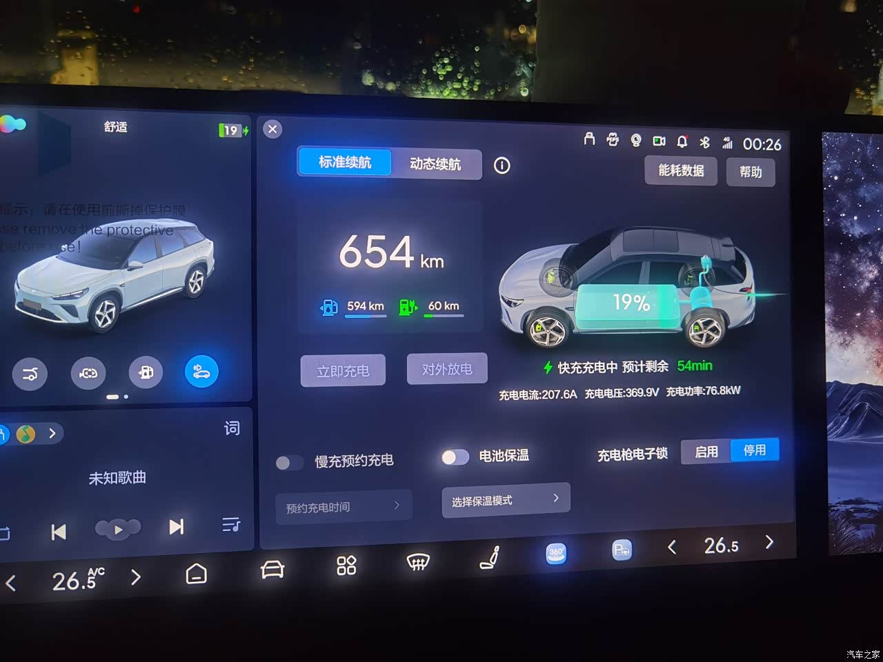 城区道路满电跑260公里,高速没有测过,纯油也没有试过,充电很快,但是到了百分六十多就开始降速了,往后越来越慢,九十五后就更慢了,建议冲到九十五就别充了。