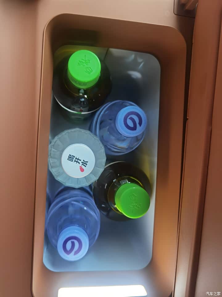 空间感觉能再大点就好了,可能这就是最小的中型车了吧!冰箱只能放5瓶500ml的水或者饮料,六瓶塞不进去。