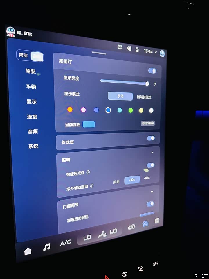 你有你的机械⚙️表,我有我的电子表😈😈😈 红旗的沉浸模式有好几个,每次换氛围灯的颜色也会变。如果等人的话就可以打开,座椅自动往后调给你一个舒适的等人空间氛围感受。这点小细节仪式感我觉得蛮好的。对了,它还是有悦耳的声音陪你的! 氛围灯虽然200多颜色但是不能呼吸就是缺少一种美的体验感,希望后期加以改进给日后提车的伙伴感受吧。