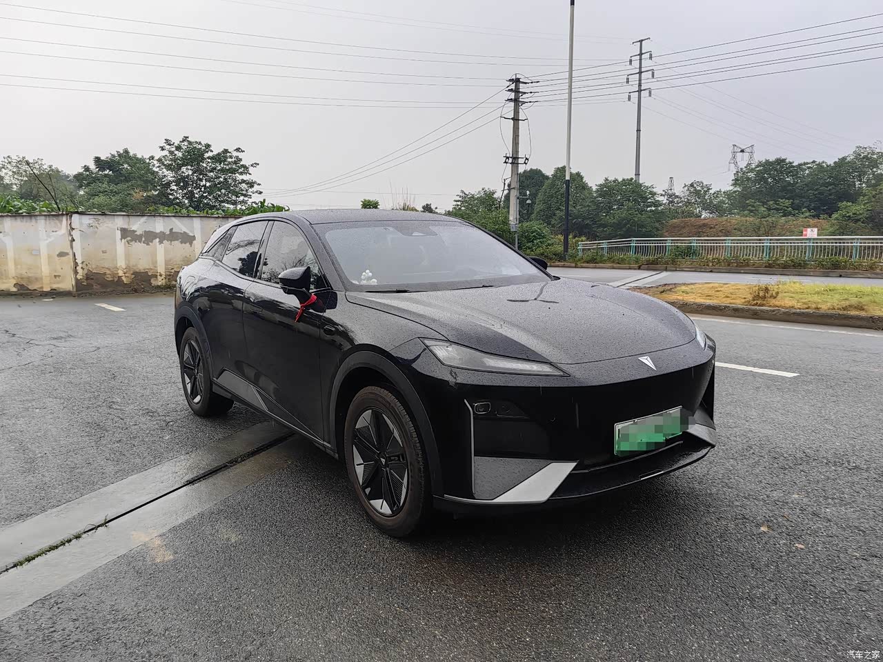 选的黑色,正常阳光下是黑色但是在灯光下会呈现深蓝色,这个其实影响不大反而觉得很新颖,整车线条感看上去也是非常的舒服,特别是前脸看上去真的很帅,轮毂造型也是很新奇可以选装。