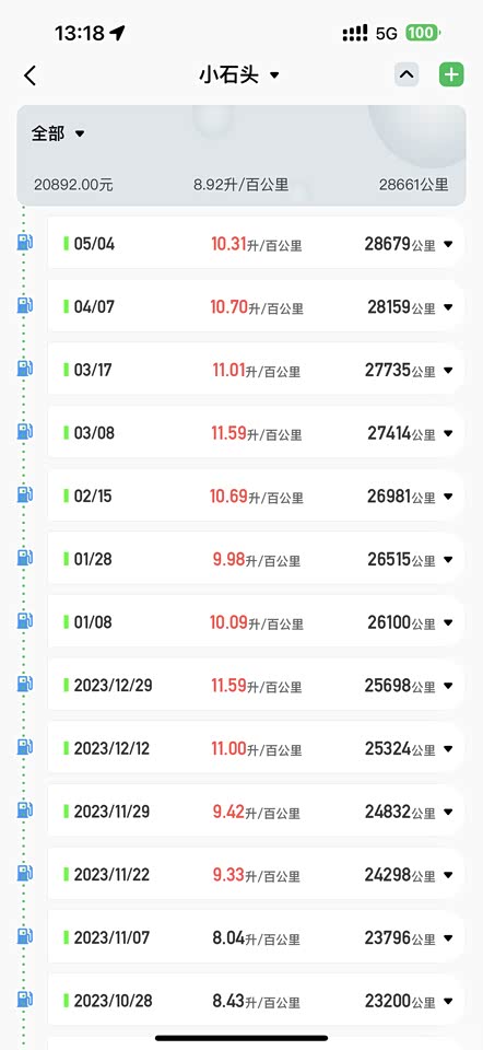 因为我的用车环境基本上是两地通勤,平时带孩子逛逛商场,公园溜达溜达,节假日自驾周边游一下,图中是用小熊油耗记录的从提车到现在油耗情况,高速6-7升,市区9-10升的样子,综合油耗的话基本保持在百公里9升左右吧!