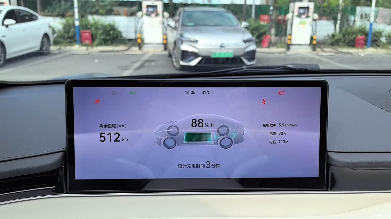 成都气候较好,目前正值春夏期间,小七表现的综合续航还是很满意的,正常满电570公里没问题(我开车的时候一般是空调24度2档,座椅通风一档) 目前还没安装家用充电桩,在外面充的,快充,从50到90大概用时17分钟。