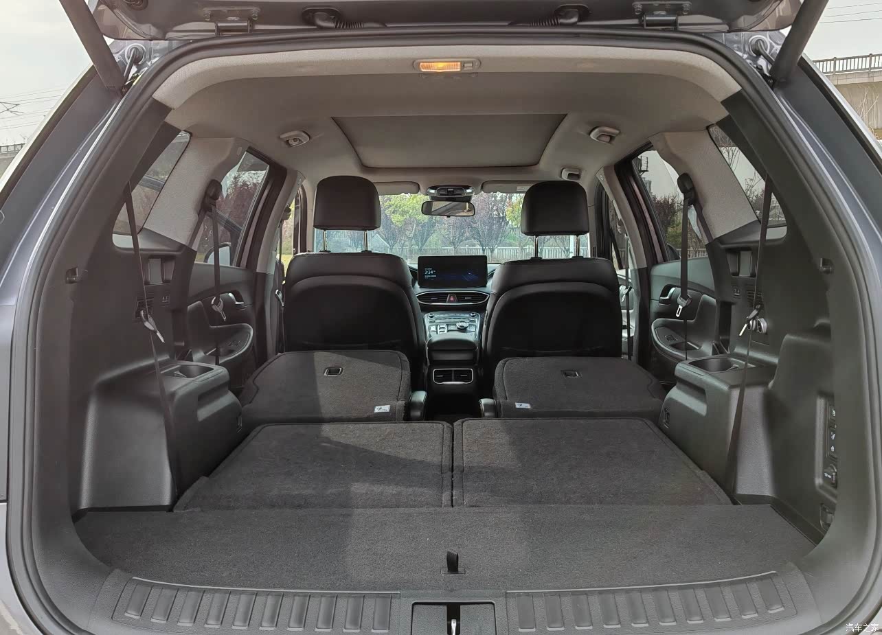 这车第二排表现不错,很宽敞可以翘二郎腿而而且是独立座椅,做起来比较舒服。第三排就属于应急用的,因为一家6口人回老家就不用开两辆车了。这车在第三排打开的时候后备箱表现一般,但是第二排和第三排座椅都可以放倒,放倒以后空间非常大,放点大东西都没问题。