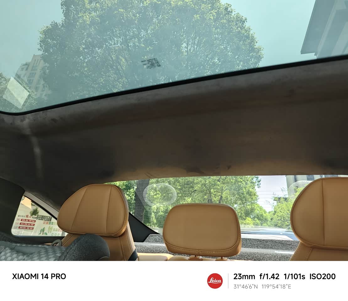 身高185cm,前排空间很大,后排腿部空间1拳,头顶1指,毕竟是轿车,空间和SUV还是有很大差距的。设计师也是听劝了,把23款吐槽的后排头顶空间大改,24款的头顶再也不晒了。车内储物空间也很多很大,门板、扶手箱、手套箱,空间足够使用。大天幕在30多度的天气下也不晒头,据官方宣传是镀银+LOW-E玻璃,很舍得下本啊