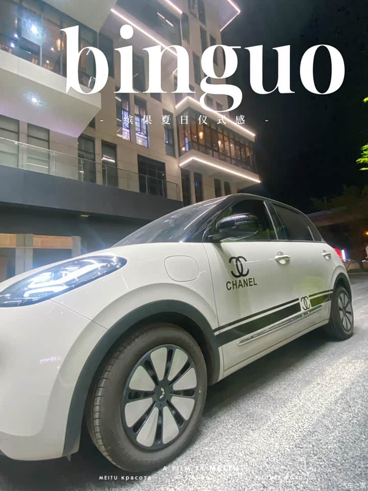 缤果外观整个就是圆润复古又很时尚,而且最经典的卖的最好的奶咖黑顶配色一绝,经典又高级,搭配上我新的车贴,秒变香奈儿.果!颜值即正义,果子就是最好看的,车群中最靓的崽,不接受反驳,有意见保留!以前大家开车久了都不愿意开,现在我是一到周末不开果子就手痒,看到它就赏心悦目,开出去又不费钱,又担心什么呢❓