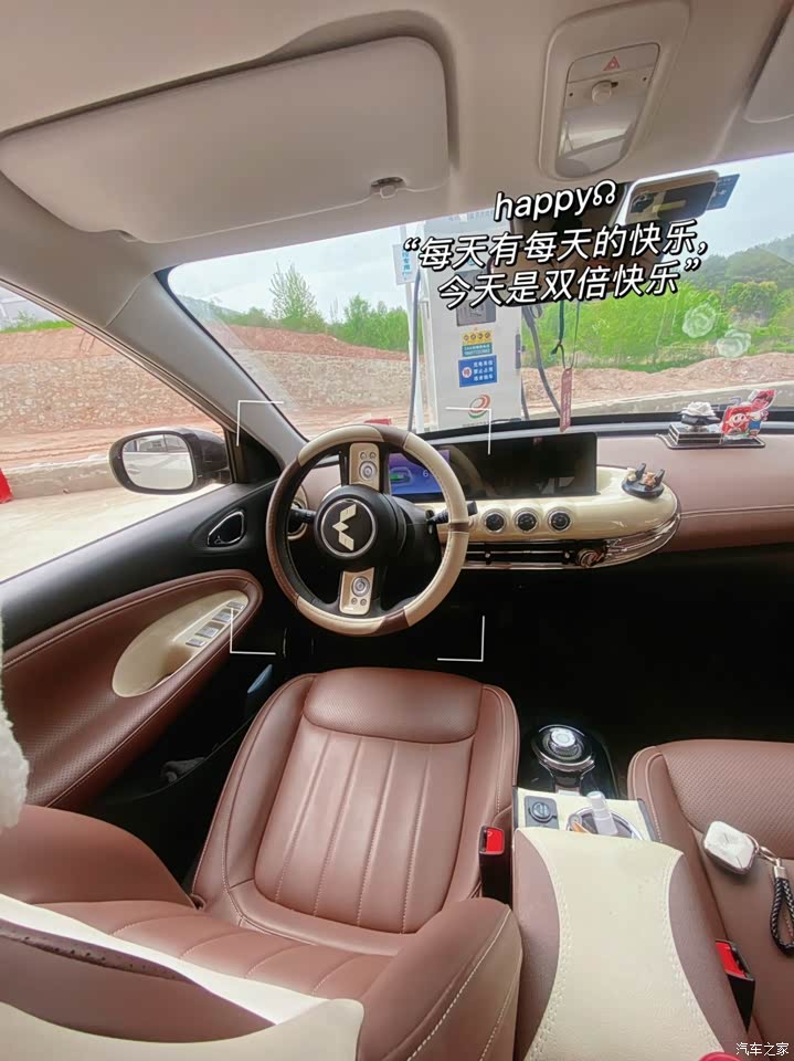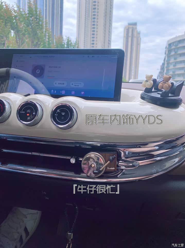 果子除了外观设计一眼万年外,复古的内饰简直是一眼万年,我就敢说买车50%内饰颜值占一半,一直到如今,我都没有过度改造车内饰,只是安了几个香薰和娃摇头摆件,因为原车内饰已经无敌,我喜欢这样的极简复古风,超爱❤️很多人喜欢把果子堆砌很多盲盒玩偶🧸,所以果子的内饰可玩性也很高,方便大家根据自己个性随意搭配,一百个人就有一百个不一样的果子,外观也许雷同,内饰绝对都别有洞天😂