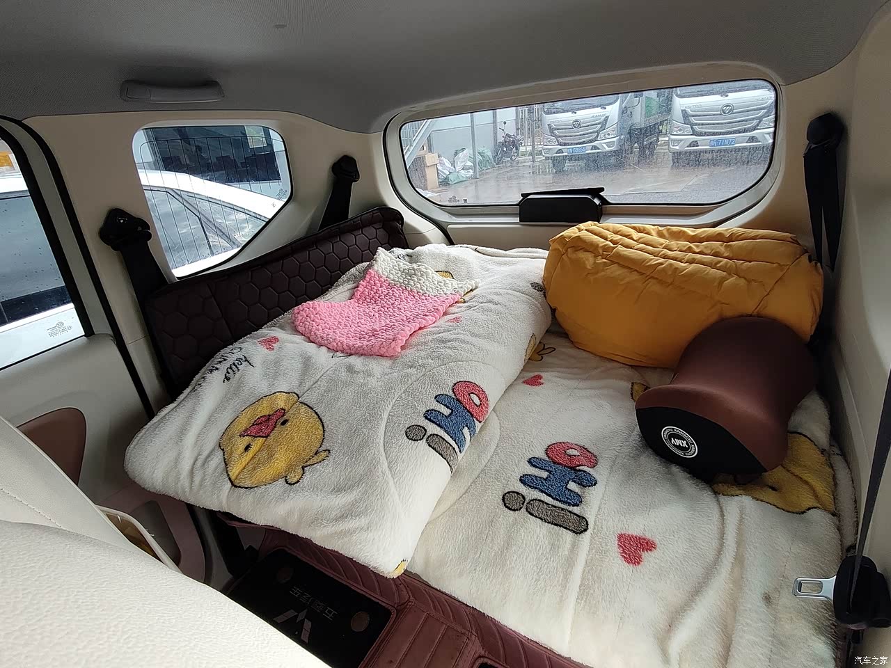 我一米六五中等身材,坐进去是真的不会觉得压头和局促,距离车顶还有大概一个半巴掌的距离,最重要的是上下车不需要弯腰,相对于轿车坐姿身高来说,舒适度拉满~ 都说马卡龙没有后备箱,实际上,后排如果不坐人的话,完全可以把后排座椅拆下来放平。冬天的时候我是直接布置成一个小床,带孩子出去玩,或者是中午午休我都能有一个舒适的小窝休息一会~偶尔还能化身成为孩子的游乐城堡~