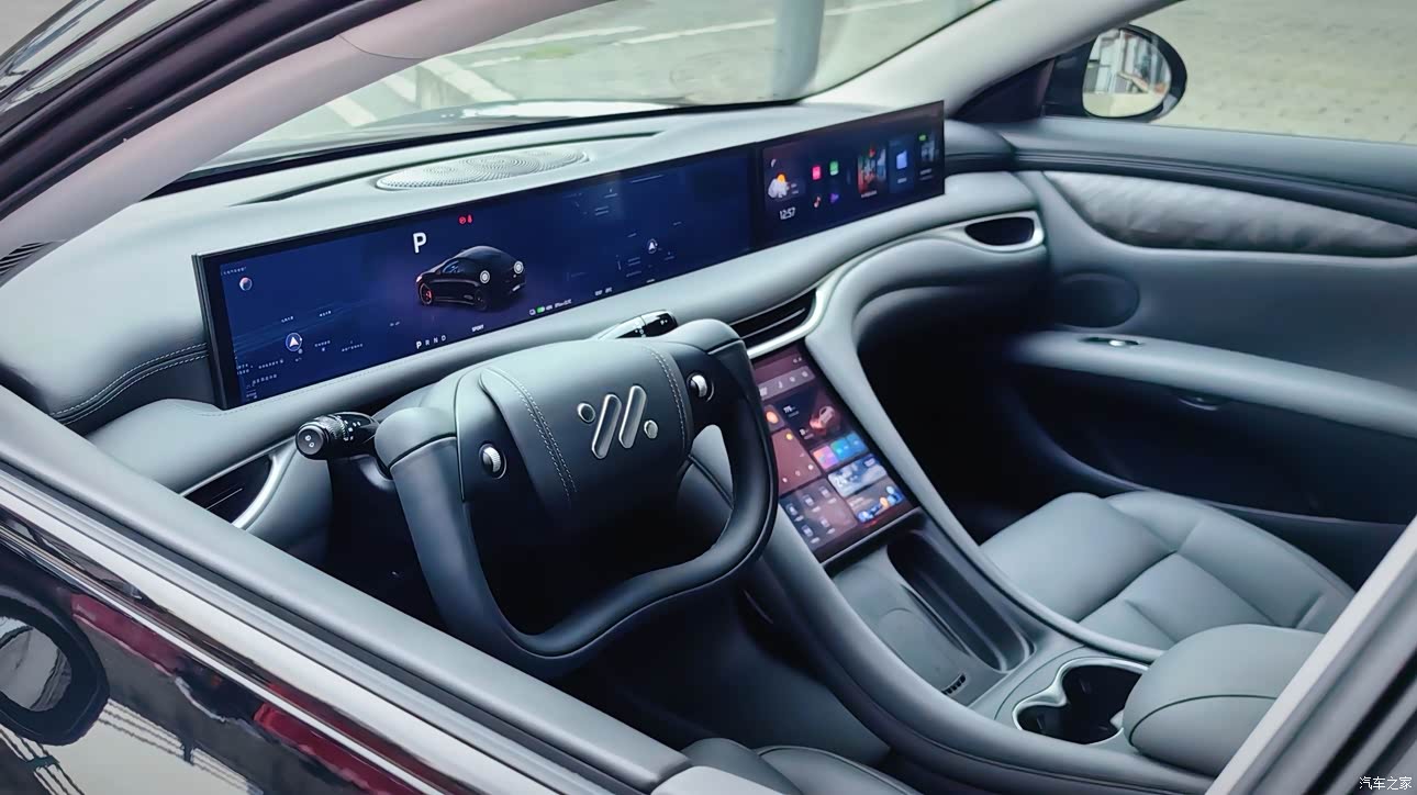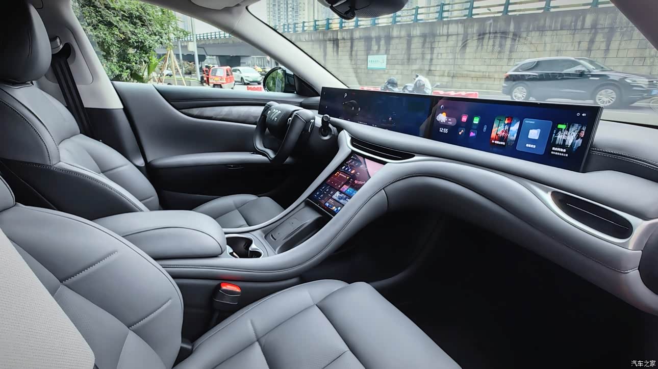 内饰设计非常有科技感,T型台的设计比较前卫,和我现在的小鹏P5竖屏相比,更加时尚好看。Max超强性能版前排自带副驾娱乐屏,其他版本的需要加6000元选装副驾娱乐屏。座椅顶配材质采用真皮,舒适度较好,坐上去软绵绵的,触感很舒服。空调效果很棒,自带车载空气净化器和PM2.5过滤装置,出风等操作均可以在屏幕上操作,简单方便。智能座舱方面很先进,人机交互能力很强。试驾感觉隔音效果很好,虽然是无边框门窗设计,但行驶中没有很明显的胎噪和电机声音,还带主动降噪效果,这点一汽的隔音技术做的蛮好。内饰整体给我的感觉是很符合美学设计,质感很棒。