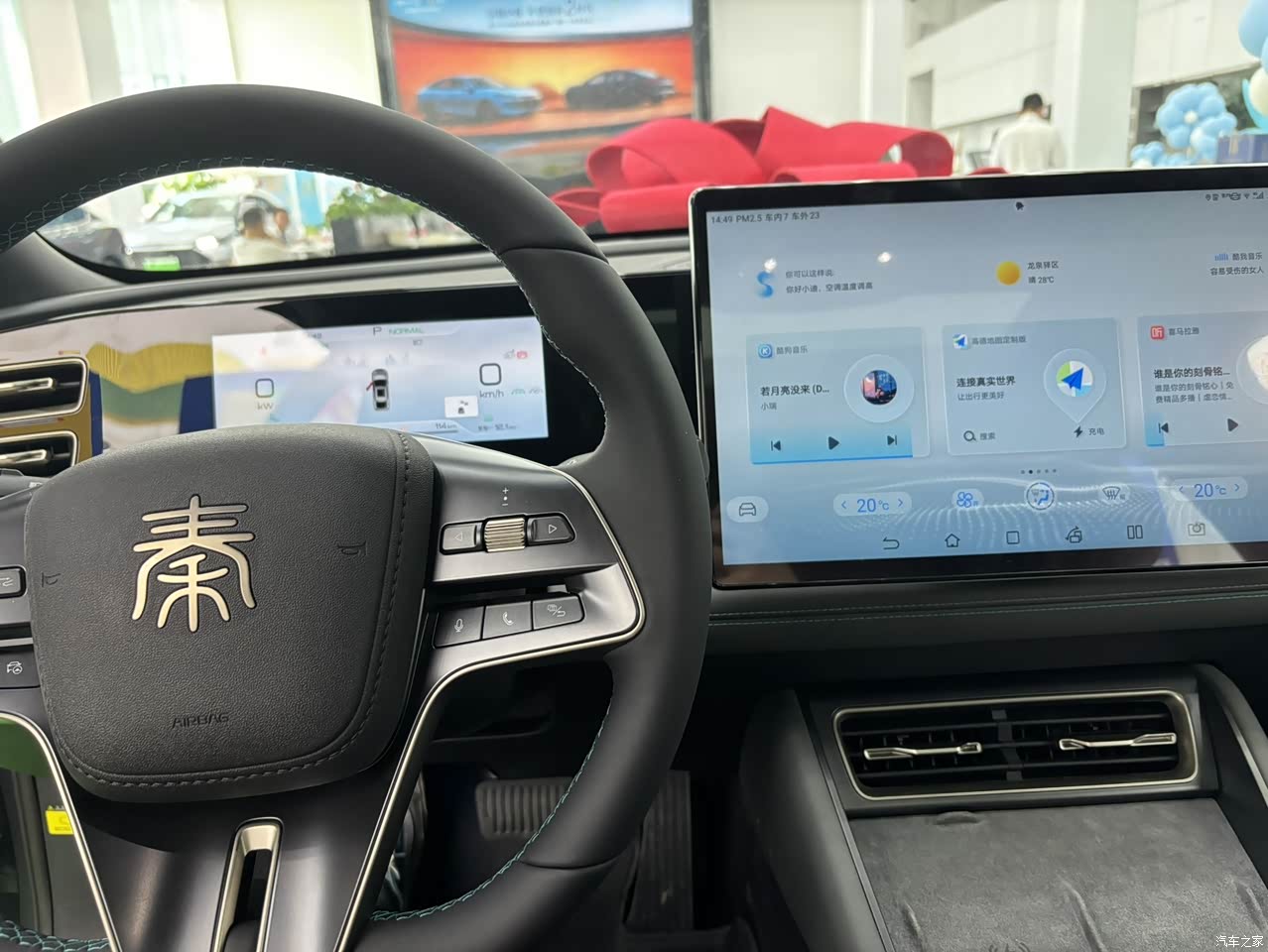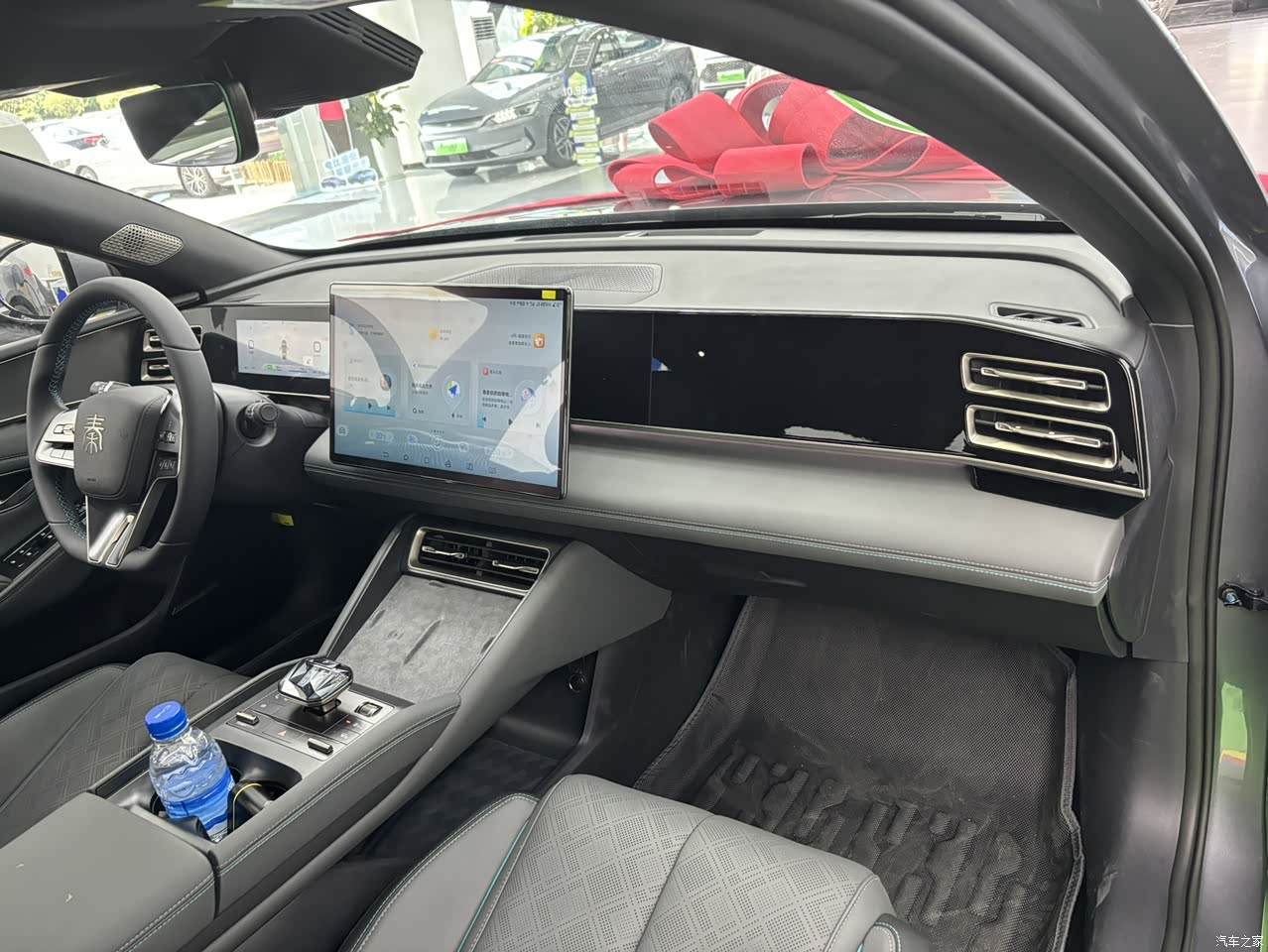 灰黑内饰,座椅是配的有点像赛车座椅,侧翼的支撑可以是让你在弯道行进时不被惯性甩依正常位置,运动气息住足 座椅也都配备的电动四向调节包括通风加热,仪表盘虽然不是三连屏 但是设计出来三连屏的风格 让前排主副驾驶更加时尚美观,而全新BYD Heart电子换挡也是特色之一。