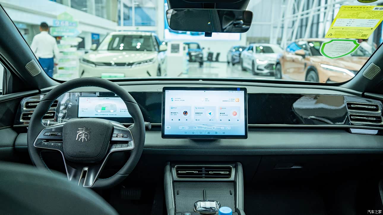 秦L这款车比起秦plus车内质感好太多了,整个车内采用大面积软包材质,手感也更加好,座椅采用的仿皮材质包裹,座椅都采用打孔设计,这样长时间乘坐也不会闷热,透气性也更加好,我在试驾的时候感受到座椅支撑性也特别棒,主副驾驶都配备了电动调节,后排座椅的座垫承托性以及填充物足够暄软,靠背角度也非常合适,整体后排乘坐舒适度不错内饰采用的简约设计风格,中控台上搭载了一块大尺寸的可旋转悬浮PAD,内部配备最新的DiLink智能座舱系统。根据配置不同,显示屏幕的尺寸分别为12.8英寸和15.6英寸。
