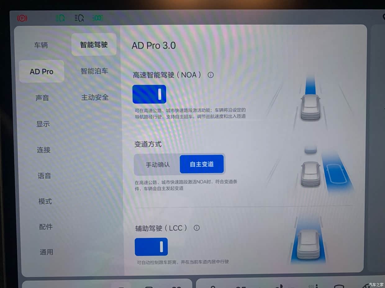 副驾下车影像: OTA7.0后增加了超8个以上的实用功能,副驾下车卫士是我最喜欢的一个功能,再也不用担心副驾的开门杀,副驾解开安全带副驾屏幕上就会显示侧面影像,实时监控和查看,影像可以放大缩小,现在下车只要看副驾屏就能很清楚全范围地观察侧后方情况,非常方便实用,现在孩子和爱人下车就非常安全和方便了。 智能驾驶:高架和高速上都用NOA,下拔两次挂档杆,NOA就能开启, 可以自动避让,跟车,刹车启动,自主变道,自动上下匝道,绕行,反正就跟老司机一样,我的智能驾驶里程已经快5000公里,大大减轻了疲劳度,再加上宽大的座椅,还有通风和按摩的使用,长途行车中也不会太疲惫,身心也很轻松,开过单程 1100 公里的长途,也很轻松的完成。