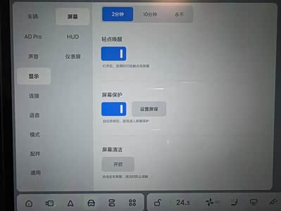 理想的中控屏幕和副驾屏幕尺寸都是很大的,是连体屏,无论是车机的查看设置,是听音乐观影K歌用起来是非常好的,4K的高清看得也很清晰,中控屏的屏幕布局也可以自己设定,在中控屏的设置中点击显示,选择屏幕,点击中控屏布局下方的选项,可以设置全屏显示,同时也可以设置分屏显示,根据自己的用途和喜爱的方式来自己设定。 大屏幕那清洁起来也是比较麻烦的,也考虑到了清洁,所以屏幕设置里面有一个模式叫屏幕清洁,但你需要对屏幕进行清洁时,就可以开启屏幕清洁模式这个按钮,开启后两个大屏幕就会锁定,也是黑屏的背景显示,这样就可以对屏幕进行清洁,不会触发里面的选项,同时中控屏显示长按3秒退出清洁模式,全部清理完成以后按屏幕3秒以后自动解锁屏幕清洁模式,用起来很方便,很人性化的。