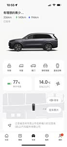理想手机App 功能还是很强大的,里面有社区版块,商城版块,服务版块,我的信息版块,车辆控制都集中在车控这里面,首先车控这上面显示的是续航里程,有总里程的数据,纯电里程的数据,用油的里程数据,非常详细。 还有车辆的显示,如果是充电状态下会显示一个充电桩模拟在充电的状态,观感效果是蛮好的。 在下面是车机的控制,第一个是车锁,可以控制车辆的解锁和锁功能,第二个是车窗,可以控制全车车窗的开启以及关闭,到什么程度也能控制。第三个是尾门的控制,控制车辆尾门的开启和关闭以及开启的程度。第四个是授权驾驶,短时间内授权别人驾驶,这个功能非常好用,比如你叫代驾,你不在车辆的旁边,你可以让代驾到你的指定停车地点,然后点一下授权驾驶,代驾就可以开着车来接你,并把你送回家。