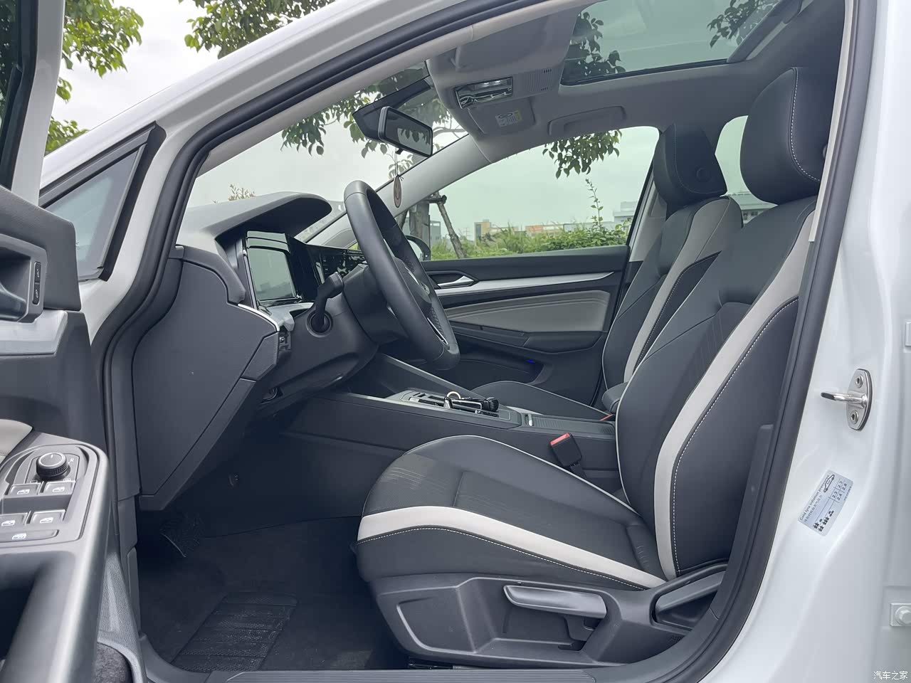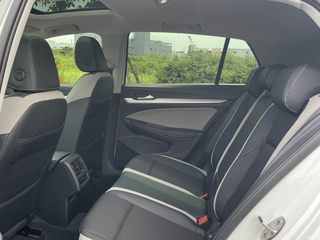 外观充满运动和活力,我选择了白色车漆,17寸轮毂看起来落落大方。我买的这个配置没有R-Line外观套件,缺少了一些运动感,多了一些可爱和萌萌哒。