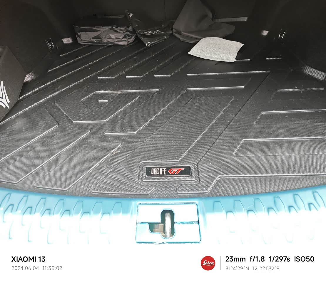 图一,左上角按键是,后排一键上车,按一下座椅去最前,再按一下回去,过程中可以手动打断不会挤到人 图中间是后排扶手,非常舒服 内饰最开始感觉蓝白黑橙都挺好,最后黑绿感觉也挺耐看的 图二,很简洁,头上没有看着丑的拉手,后排一手扶扶手,一手放在前排座椅头枕镂空处很合适 图三,后排 官网买的tpe脚垫、后备箱垫和车内饰很搭 内饰对称性好,主驾到副驾扶手箱是一条直线下去,很利索
