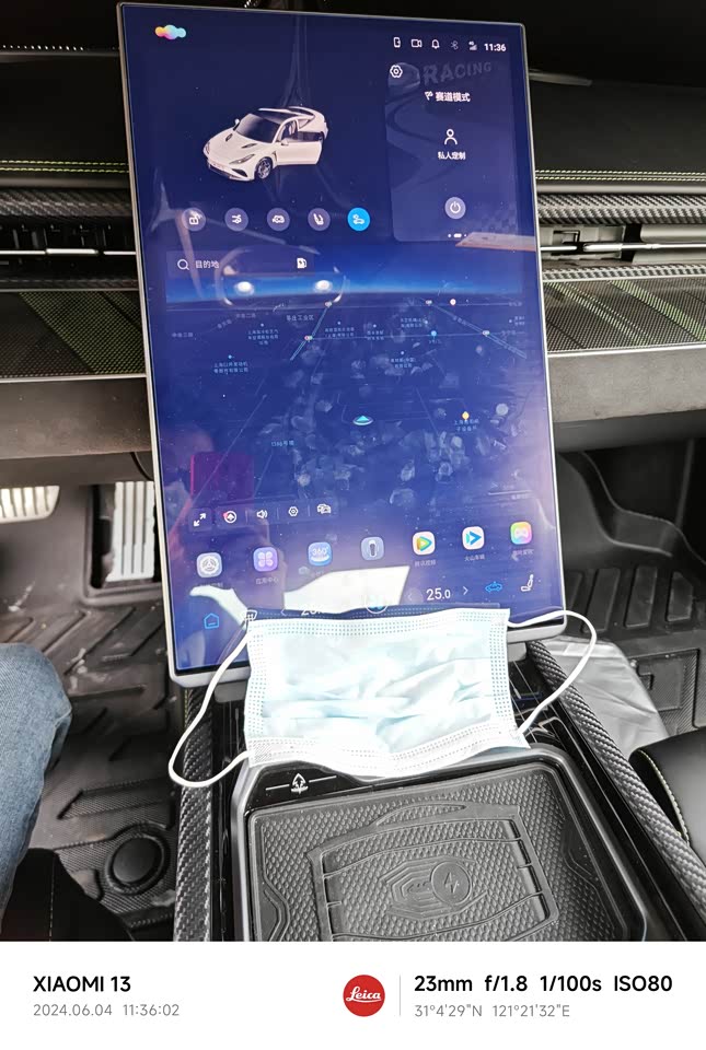 车机不卡 OTA升级很频繁,最新更新完运动模式的新页面(图)看着比老款好 哨兵模式(哪吒卫士)很好用,让人安心,就是费电,目前是一小时消耗总续航1.5%-2%的电耗,开八小时自动关(能设置几小时会关更好) 屏幕超级大,看导航方便(图2成人口罩对比尺寸) 行车记录仪清晰度和视野角度还挺好 魔毯座舱提前开空调好用,座椅通风挺好的,加热还没用过 问题: 不能自己装app,网易云还没有,被迫又买了qq音乐的会员 360全景时速30以上不让用,我有个同学是汉,高架还开360一直盯着中控看,这种司机就别买了 而且360清晰度一般,不能说差,勉强够用