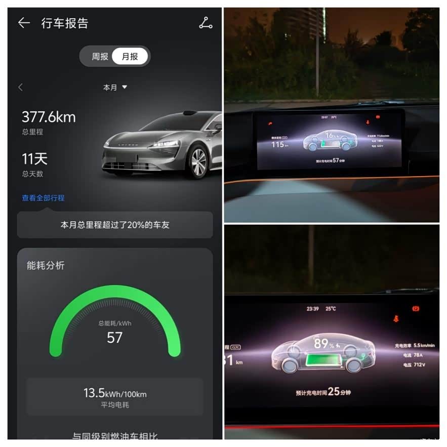 关于电车,大家可能比较关心的就是电耗;提车的这段时间,正值长沙的酷夏,天气非常炎热;加上很多过来试驾的朋友,基本都是地板油,体验极致的加速,我的第一次续航的电耗平均在13.5/百公里,这个电耗表现可以说非常可以了;当然,作为800V的车型,充电速度也非常重要,为了测试它的充电速度,我特意找了一个公共的充电车位;33分钟,充了62.44度电,77%的电,可以跑542公里,花了47.19元(全程看电影,没开空调),这个充电速度可以说基本没有续航的焦虑了,就算是跑高速长途回家,简单休息一下,就可以继续满电出发了~