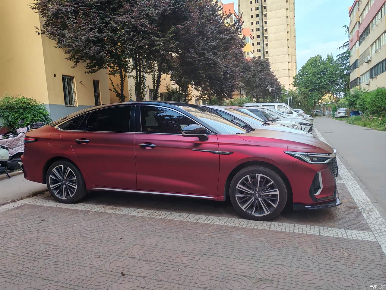 前文说了,原车黑色,买来改了色,电镀罗曼尼红,这个色23年会灰常流行,我是抖音上看到个湖南小伙改了这个色,详细聊了聊,觉得不错,就改了这个电镀罗曼尼红➕钢琴黑的悬浮顶,自己决定好看,朋友说是大气,车友群里有说骚气😅😅自己决定好就好 后来加了尾翼,加了前铲。目前相当满意