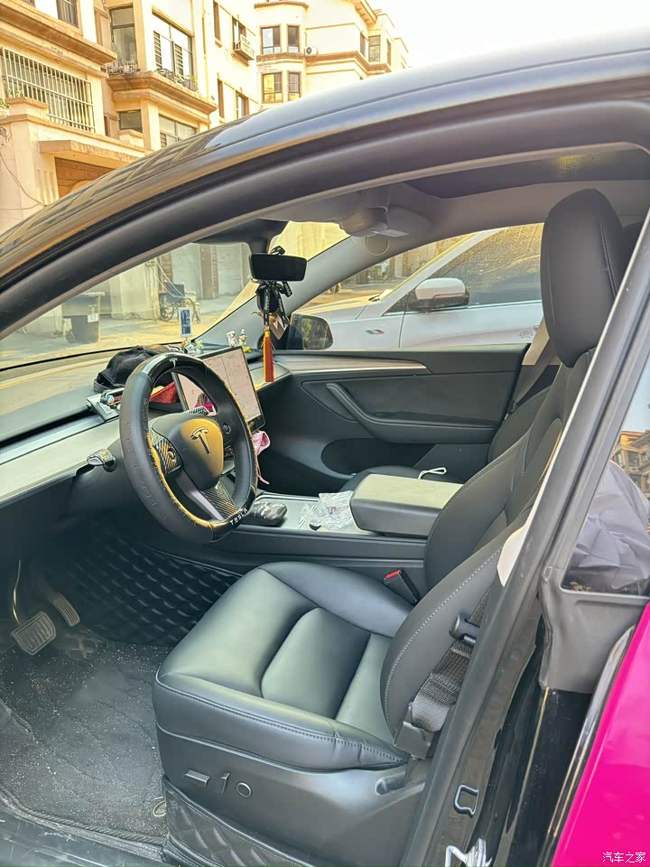 特斯拉的内饰就简洁大方 自己改造空间特别大内饰的储物空间也可以 特斯拉的车机屏幕布置起来特别可爱 屏幕下面还可以安装储物盒 车内饰自带三个储物箱 自己还可以改造一些 内饰颜色搭配也是很高级 还有一些设计的小细节 比如车内有可以挂东西的小挂钩🪝可以用来日常挂一些衣服和帽子 四个车门两侧储物空间也挺大 放好几瓶水都没问题