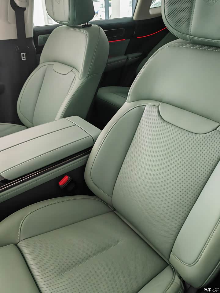 内饰napa真皮座椅,包裹感强,用手去摸感觉有质感,况且牛油果绿这个内饰真是绝了
