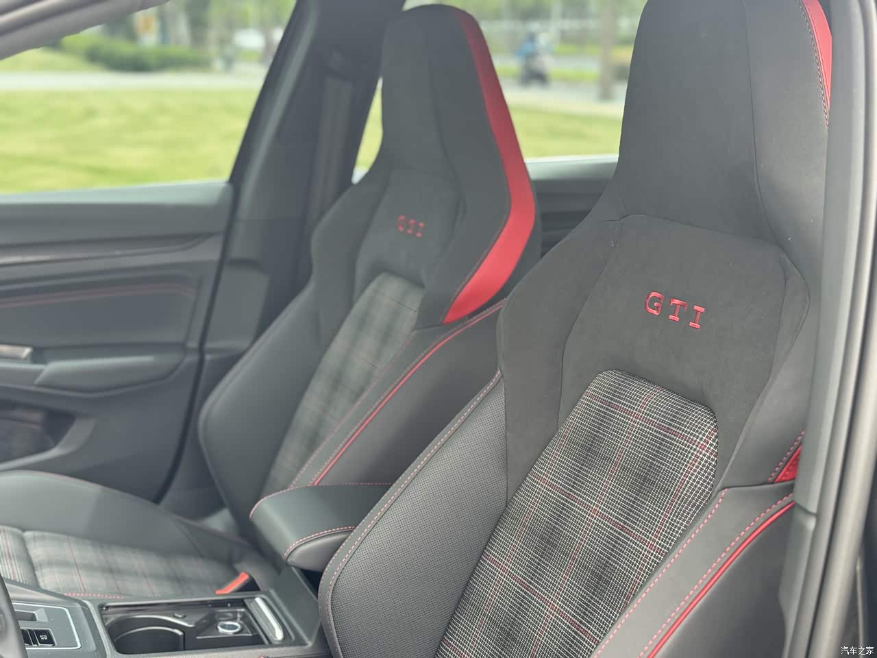 内饰嘛,大众的设计都差不多,依旧是采用套娃的老路线,但也有很大的区别,车里随处可见的是GTI标识和红色的缝线代表着它的不平凡,再加上这个包裹感极强的运动座椅,氛围感拉满。