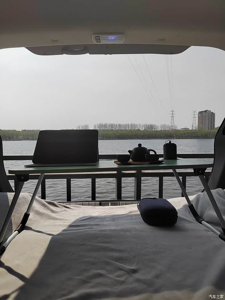 这台车最大的优点就是内部空间足够大,前排调整到舒适角度,后排座椅还有足够的乘坐空间,而且三个人坐起来,也不显得拥挤。后排座椅放倒后,秒变成了大床,想要放松的时候,就把车开到河边,放上一个折叠桌,喝喝茶,看看电影,整个人瞬间就放松下来。在露营的时候,还可以躺在车里休息。