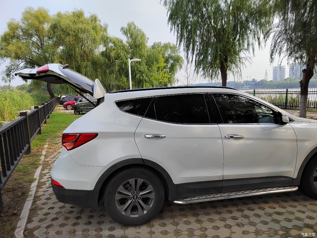 这台车外观选择了白色,看上去简约大气,虽然已经9年了,现在感觉仍然不落伍,这款胜达前脸的进气格栅采用的是横条加镀铬的亮条设计,一眼看上去,辨识度很高,前杠下的日间行车灯采用了横“L”的设计,与前雾灯交叉呼应,前大灯出厂还是卤素灯,后期自行改装了LED灯,亮度有了明显提升,车身侧面加装了踏板,便于老人和孩子上下车,整体看上去很协调。