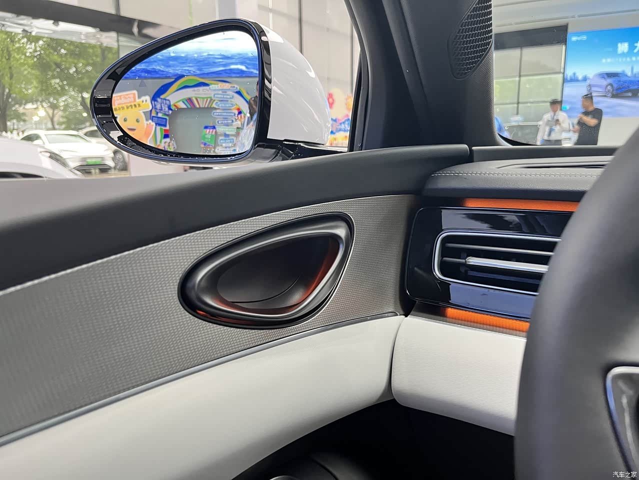 内饰方面的话,先说说整体吧,因为配备了全液晶的悬浮式大屏和全液晶仪表盘,整体科技感并不会因为价格便宜,导致看起来很盖中盖,有氛围灯仪表台双层的还是挺好看,车门是单层的,液晶仪表拍不清,我记得好像是8.8寸,中规中矩吧,大屏现在都标配,带旋转功能的化妆镜的灯都有,方向盘的话,这台车属于跟之前差不多,功能区是两个鱼鳍的造型,握感还不错,摸起来都是软性材质的,坐起来的感觉是比老款舒服点,感觉整体上软了不少,不知道是不是错觉。但是不是说整体就是舒适性,因为这辆车本身的调性是偏运动的。只是说比以前好。说实话,可能还普通电车会舒服点。