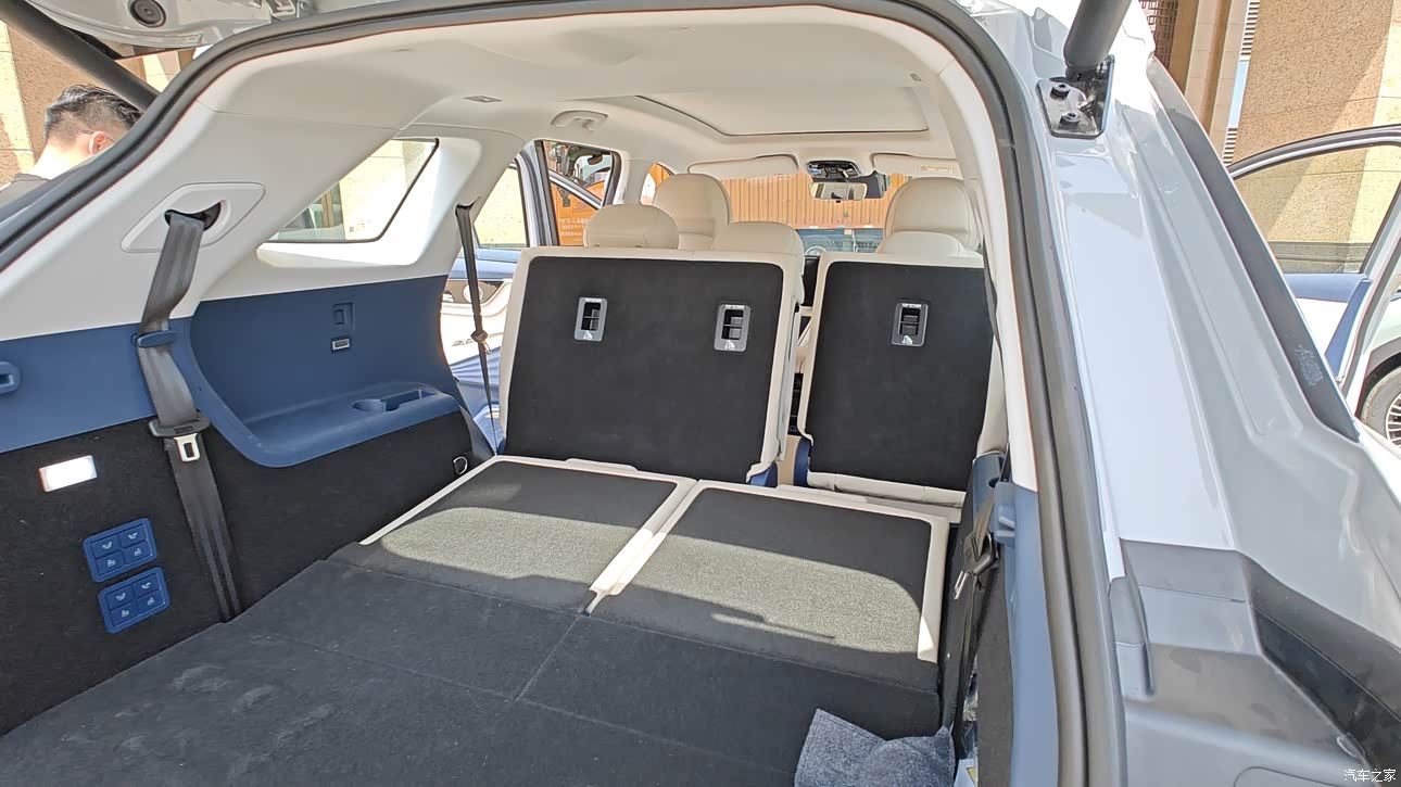 整车空间上还是很富裕的,二排如果调整到合适位置,三排乘坐也是没问题的!整车的储物空间也是很足的,还有几处很人性化的挂钩挺不错的,平时打包或者购物等挺方便的,感觉T9很适合家用!整车座椅全部采用电动调节,这样三排进出时老人孩子也能方便操作,这点还是值得点赞的,二三排放倒也是几乎纯平状态,整个后备箱空间也很不错!